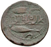 Head of Melqart l., clad with lion’s skin, club on shoulder; dotted border.