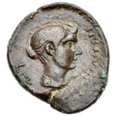 Bust of Fulvia r.; dotted border.