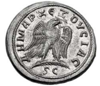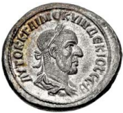 Laureate bust of Trajan Decius r., wearing cuirass and paludamentum, Sean from rear; dotted border.