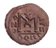 figure in imperial ornat with kreuztab and globus cruciger perched frontal left on bird,, T”