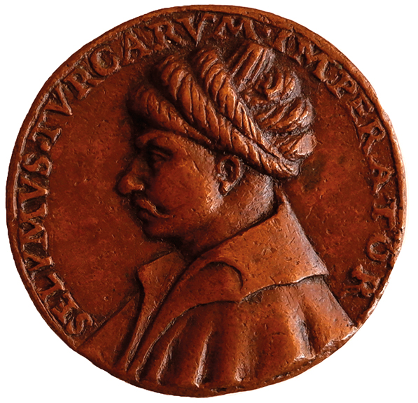 • Turkey. An extremely rare medal only known by two specimens, including the present. It is unsigned (North Italian Master?) and commemorates the capture of Memphis (24 January 1517 AD) and the conquest of Egypt by Selim I as well as his appointment as a caliph. This medal shows on the obverse probably the only authentic contemporary portrait of Selim I.