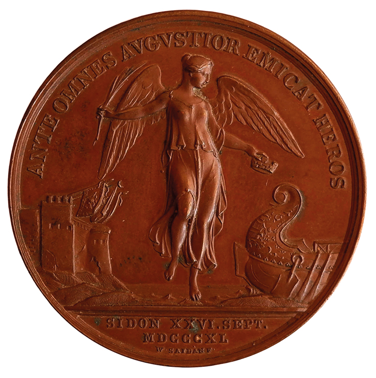 Austria-Hungary. Medal by W. Saidàn commemorating the capture of Sidon in 1840 AD. The Austrian Archduke Friedrich Ferdinand conquered the city during the Syrian campaign of the ‘London Alliance’ (Great Britain, Austria, Russia and Turkey) against Mehmet Ali Pasha of Egypt.