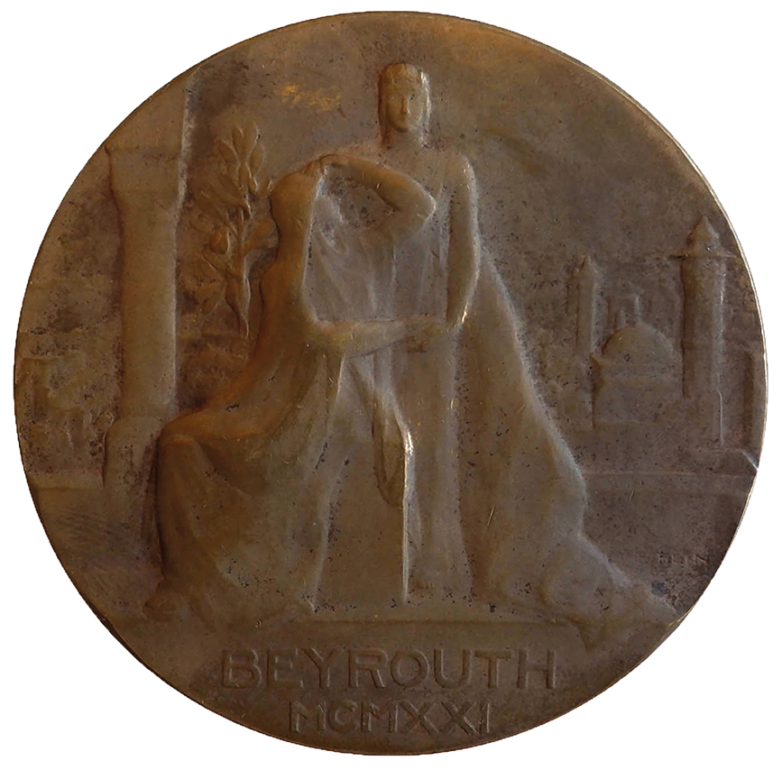 • Lebanon (French protectorate). Unifaces proofs of a medal by Edouard-Pierre Blin commemorating the Beirut fair of 1921 AD.